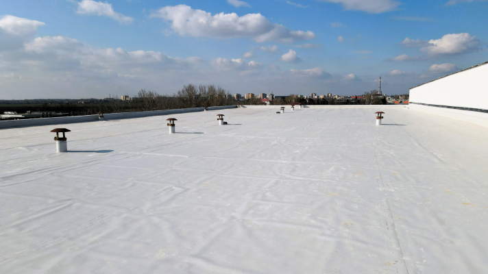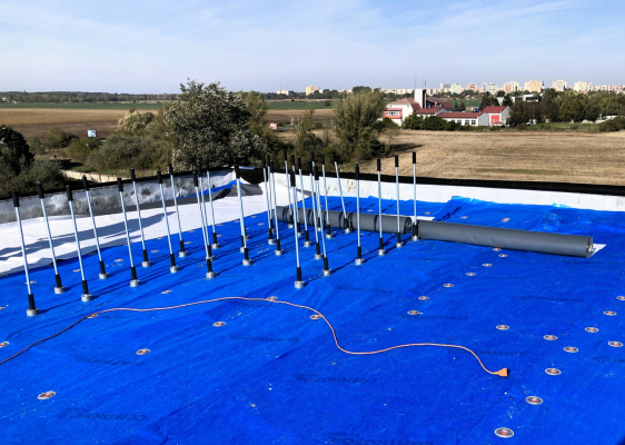Oprava plochej strechy hydroizolačnou fóliou na bytovom dome